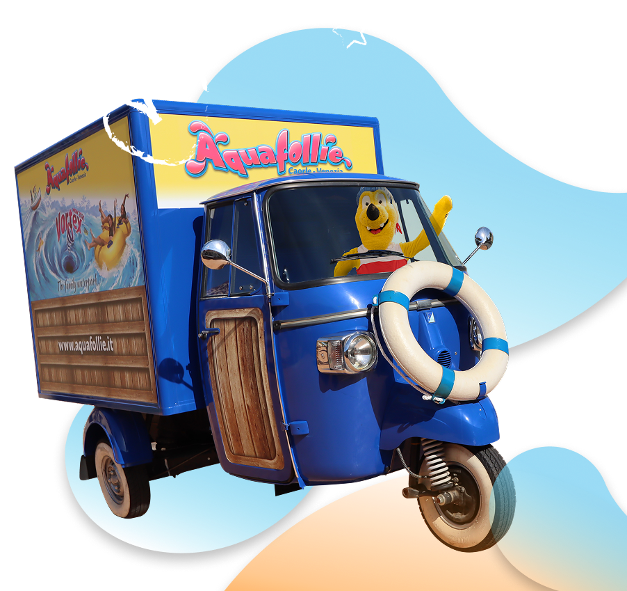 Procházka centrem a… překvapení! Pokud se procházíš ulicemi Caorle, sleduj naši Apecar Aquafollie: je to ten nejsympatičtější způsob, jak si zajistit zábavu… s výhodou navíc 😉